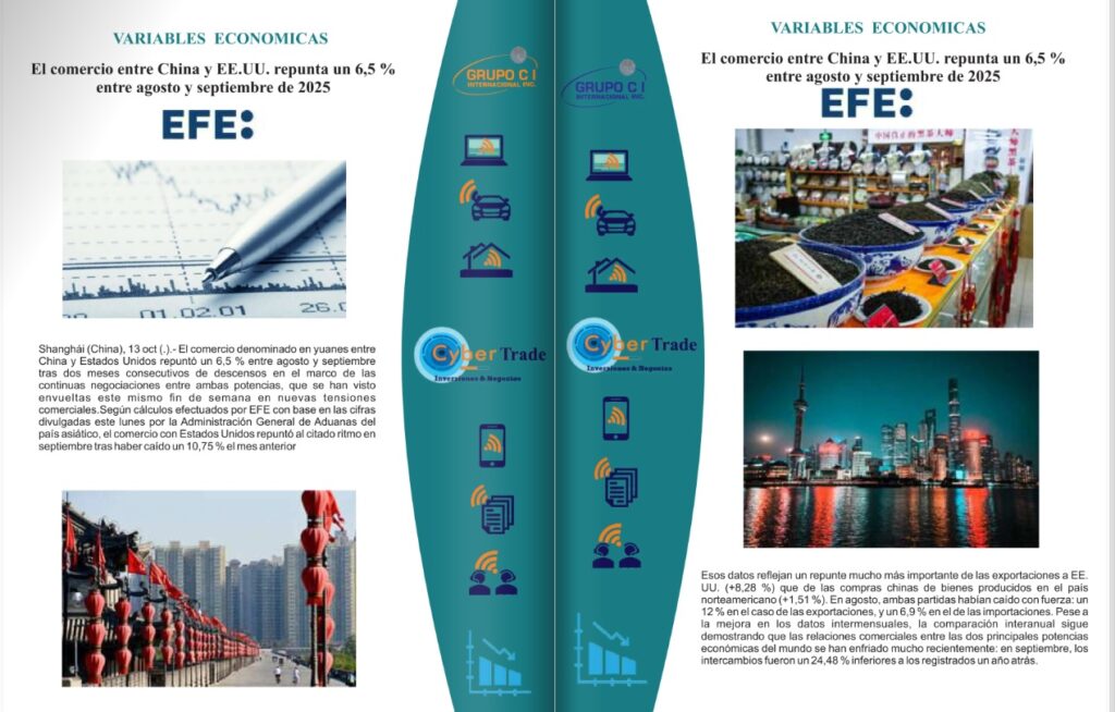 El comercio entre China y EE.UU. repunta un 6,5 % entre agosto y septiembre de 2025